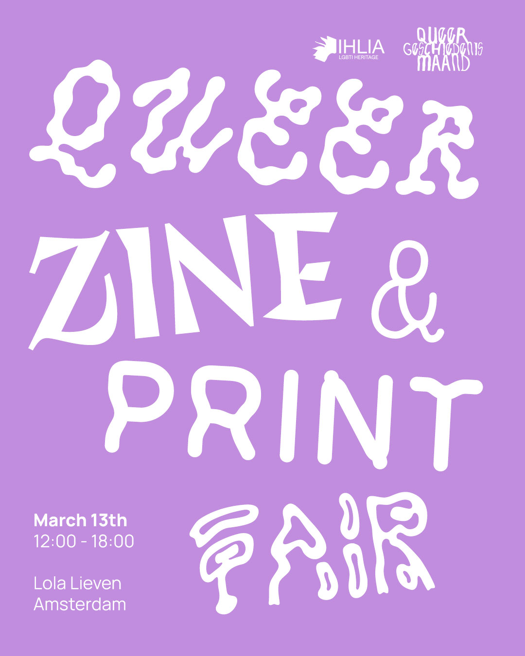 Op vrijdag 13 maart organiseert IHLIA LGBTI Heritage een queer zine en printbeurs in de Lola Lieven in Amsterdam ter ere van de lancering van IHLIA’s eigen queer