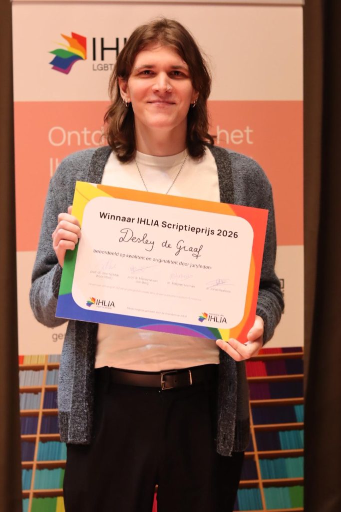 In de Forumzaal van OBA Oosterdok is gisteravond voor de derde keer de IHLIA Scriptieprijs uitgereikt. Tijdens een speciale bijeenkomst heeft de vierkoppige jury uit drie genomineerden de prijs toegekend aan Desley de Graaf die in The Men in One Hammock bijna honderd rechtszaken onderzocht over homoseksuele sodomie die op of rond VOC-schepen plaatsvonden en in Batavia voor de rechtbank werden gebracht.