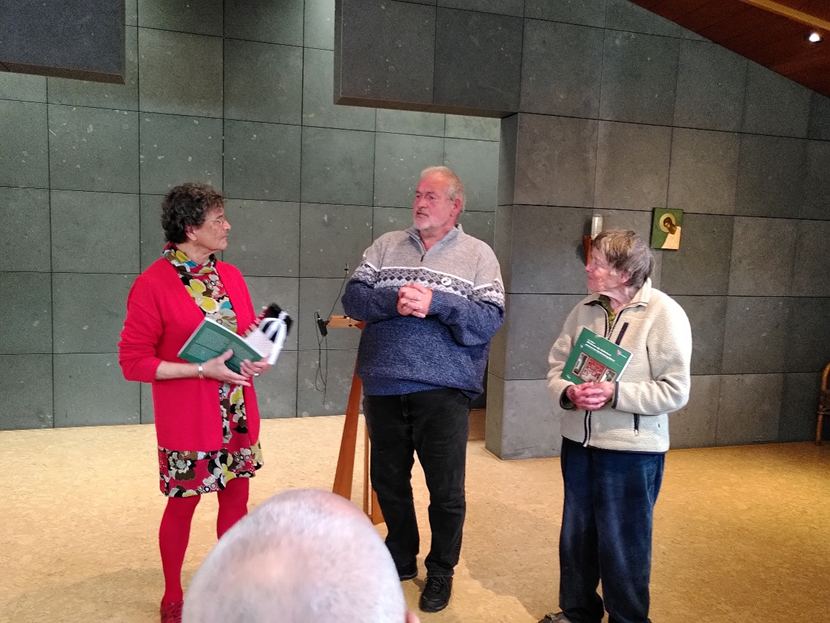 Gea schenkt een exemplaar van haar levensboek aan Teunis Hol. ‘Hij is homo en de voorzitter van de kerkenraad van mijn kerk, de Oecumenische Janskerkgemeente in het centrum van Utrecht. In het verleden organiseerde Teunis jarenlang elk jaar een serie bijeenkomsten voor homoseksuelen, om hen duidelijk te maken dat in onze kerk homoseksualiteit geen enkel probleem is. In mijn boek heb al wel vermeld dat dit (voor zover ik weet) de eerste kerk was die vele jaren geleden een lesbische vrouw die theologie had gestudeerd, als dominee heeft aangenomen. Het is dan ook al heel lang een kerk waarvan vrij veel lhbti-ers komen, waarvan de meesten ook lid zijn’.